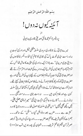 مندرجہ بالا دو مختصر تحریریں کتابچوں کی شکل میں ابّاجی رحمۃ اللہ علیہ کے سلسلہ کی موجودہ تصویر کشی کرتی ہیں جس میں مصنف نے انتہائی دل سوزی کے ساتھ سلسلے میں رونما ہونے والی تبدیلیوں، وضعات اور بدعات (حسنہ بھی) کا حوالہ دے کر سلسلہ کے اساسی اصولوں کی نشاندہی کی ہے۔ تحریر کا انداز کہیں کہیں عاجزانہ اور کہیں ناقدانہ ہے۔